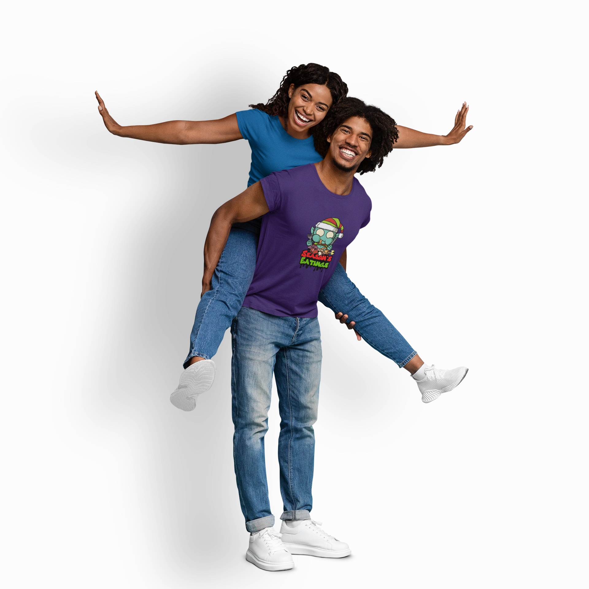 This shirt says exactly what the holidays really feel like: messy, chaotic, and deliciously unhinged. Your festive ZomBabie sits front and center in full elf mode, dual-wielding utensils, ready to dig into a holiday feast that’s… well, VERY on-brand. Bright colors, bold lines, and that unmistakable ZomBabieZ humor make this tee an instant standout.